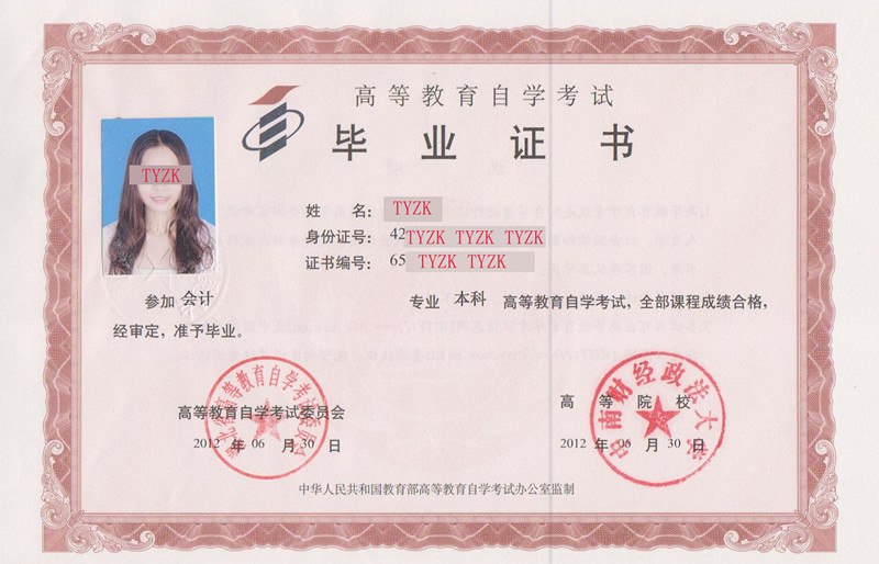修完全部课程考试合格,论文答辩通过,出示国家承认的专科文凭.由主考学校,湖北省自学考试委员会联合颁发本科毕业证.国家承认学历,教育部学历查询,网上电子注册,可直接参加国家公务员考试各高校硕士研究生考试,符合学士学位授予条件者由主考学校授予学士学位!